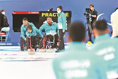 在中國隊主教練岳清爽的指導下,整支隊伍心態(tài)、技術(shù)等方面都得到了提升。進入北京冬殘奧會周期后,中國輪椅冰壺隊在世錦賽上的表現(xiàn)同樣發(fā)揮出色。2019年,在蘇格蘭斯特靈舉行的世界輪椅冰壺錦標賽決賽中,中國輪椅冰壺隊以5比2的絕對優(yōu)勢戰(zhàn)勝東道主蘇格蘭隊,獲得2019年世界輪椅冰壺錦標賽金牌,僅用一年的時間,中國輪椅冰壺隊便實現(xiàn)了大滿貫?!跋嗉s北京”2021年世界輪椅冰壺錦標賽決賽上,中國隊以5比3戰(zhàn)勝瑞典隊,時隔2年后再次奪冠。