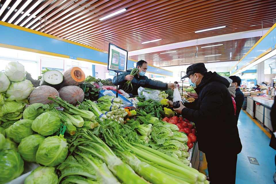 3月2日,太原市迎澤區(qū)惠民市場內(nèi),市民正在購買蔬菜。據(jù)了解,該市場嚴格執(zhí)行疫情防控措施,目前市場內(nèi)菜價平穩(wěn)、貨源充足,有效保障轄區(qū)居民的生活需求。(記者阮洋攝)