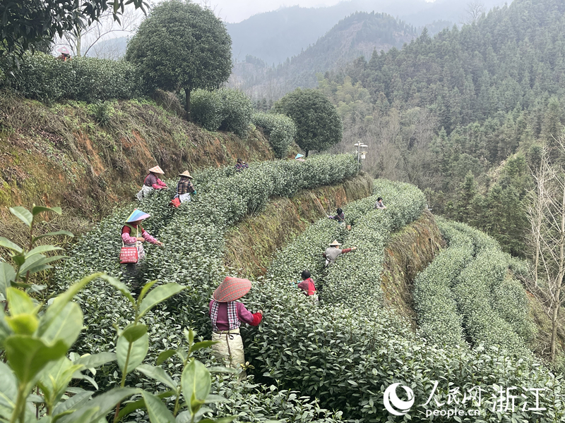 采茶工采摘開化龍頂頭茶。人民網(wǎng) 王蕭蕭攝