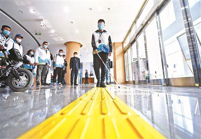 北京2022年冬殘奧會正在舉行,殘奧運動員在賽場上的奮勇拼搏贏得了世界的掌聲。作為冬殘奧會的舉辦地之一,近年來,北京市的無障礙環(huán)境服務保障水平顯著提升且更有溫度。昨天,剛啟用不久的北京市殘疾人服務示范中心(以下簡稱“示范中心”)迎來了16位城市志愿者。他們在冬奧組委無障礙體驗員的帶領下,戴上眼罩體驗盲道、坐在匯愛影廳里“聽”電影、體驗科技助殘的力量。