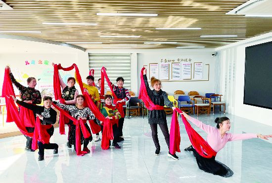 3月10日,金華開(kāi)發(fā)區(qū)江南街道南苑社區(qū)新時(shí)代文明實(shí)踐站一樓大廳,南苑社區(qū)藝術(shù)團(tuán)“幸福里”舞蹈隊(duì)的阿姨正在排練舞蹈。今年初,南苑社區(qū)新時(shí)代文明實(shí)踐站重新啟用,老年人可以在這里看書(shū)、聽(tīng)?wèi)颉裎幕钬S富多彩。(時(shí)寬兵)