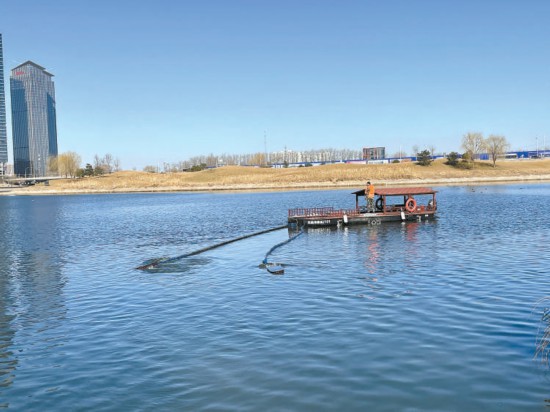 工作人員駕駛智能清理船凈化水面。本報實習記者 張佳琪攝