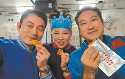 執(zhí)行迄今時(shí)間最長一次太空飛行,神舟十三號(hào)航天員趕上了第一次在太空跨年,第一次在空間站過春節(jié)。在地面團(tuán)隊(duì)的精心保障下,航天員們除夕夜為人們送上來自太空的新年祝福,在空間站度過了年味十足、充實(shí)精彩的虎年春節(jié)。從太空出艙、“天宮課堂”開講,到手控遙操作完成貨運(yùn)飛船與空間站組合體交會(huì)對(duì)接試驗(yàn),從中國女航天員首次太空漫步,到3名航天員太空飛行累計(jì)超100天,太空“出差”期間,航天員們開展了一系列空間科學(xué)實(shí)驗(yàn)和技術(shù)試驗(yàn),刷新了一個(gè)又一個(gè)中國航天紀(jì)錄,為中國空間站正式建成打下堅(jiān)實(shí)基礎(chǔ)。