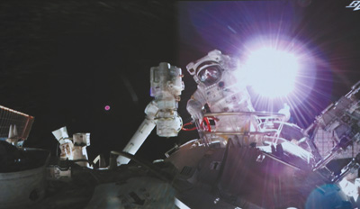 在北京航天飛行控制中心拍攝的葉光富出艙畫面。