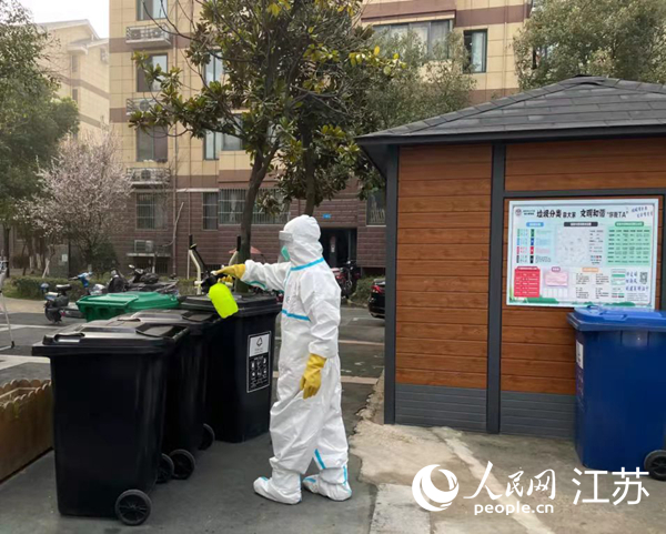 趙必柱對垃圾桶進(jìn)行消殺。江融宣攝