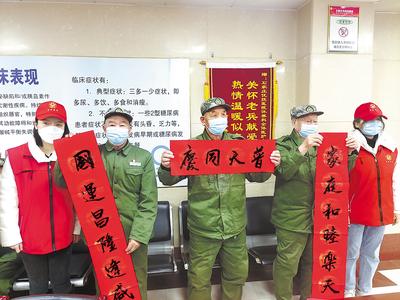 石家莊市正定縣“常山老兵”退役軍人志愿服務(wù)隊(duì)到市榮軍優(yōu)撫醫(yī)院開(kāi)展“賀新春、獻(xiàn)愛(ài)心、送祝?!敝驹阜?wù)活動(dòng)。 河北省退役軍人事務(wù)廳供圖