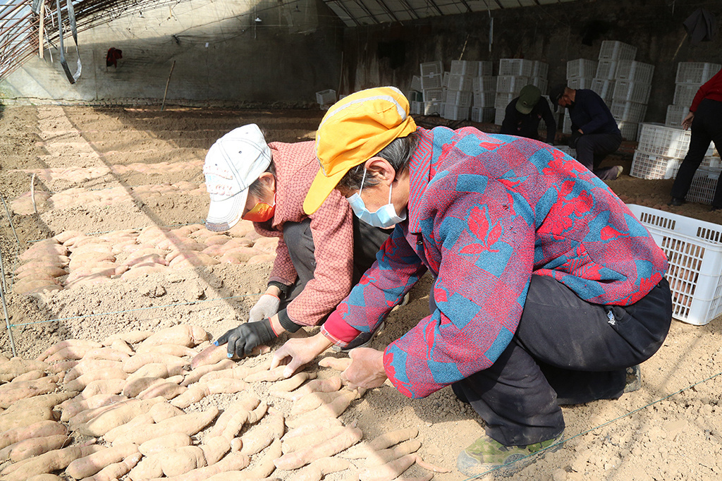 “當(dāng)前,我們正在進行‘神農(nóng)1號’紅薯的排種,該品種具有萌芽性好,結(jié)薯集中整齊,口感香甜的優(yōu)點,畝產(chǎn)可達到5000—6000斤,極大地提升了紅薯的產(chǎn)量?!睂I(yè)合作社負責(zé)人王飛介紹道。