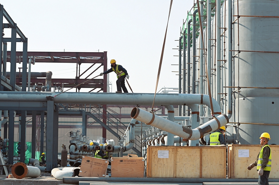 呂梁市圍繞氫能“制、儲(chǔ)、運(yùn)、研、應(yīng)用”加快構(gòu)建全產(chǎn)業(yè)鏈集群發(fā)展格局,強(qiáng)力推進(jìn)“一體兩翼、三港四鏈”氫能發(fā)展戰(zhàn)略,呂梁市氫能產(chǎn)業(yè)呈現(xiàn)動(dòng)能加速集聚態(tài)勢。圖為3月16日,鵬灣氫港氫能產(chǎn)業(yè)園施工現(xiàn)場。(劉亮亮攝)