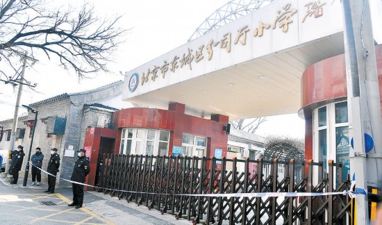東城區(qū)分司廳小學門口已經拉起警戒線,學校暫時停課。本報記者 蔡代征攝