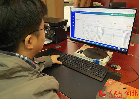 工作人員通過河北省建筑工人實(shí)名制和分賬制管理公共服務(wù)平臺監(jiān)測某項(xiàng)目農(nóng)民工考勤記錄。 人民網(wǎng) 林福盛攝