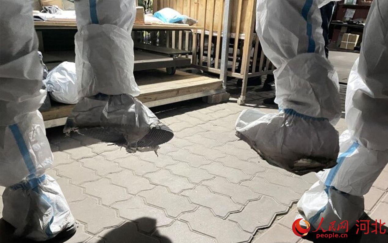 深夜的小區(qū)里,兩位疲憊的“大白”終于可以休息一會(huì)兒,一抬起腳,卻發(fā)現(xiàn)防護(hù)服已因?yàn)椴煌W呗罚恍幽テ屏恕?/p>