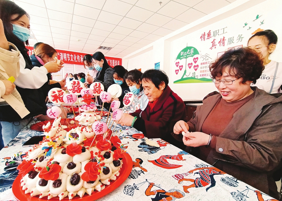 三月二十七日,石樓縣新時(shí)代文明實(shí)踐中心開展“清明節(jié)文化傳承教育和傳統(tǒng)美食制作”專題培訓(xùn),邀請(qǐng)“面花”手藝人現(xiàn)場(chǎng)教授捏面燕,倡導(dǎo)移風(fēng)易俗、文明祭祀。(李晶晶攝)