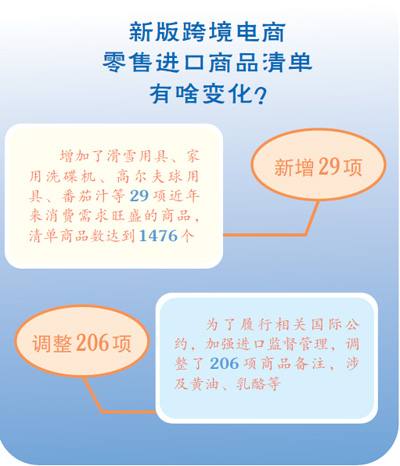 此次調整,在《跨境電子商務零售進口商品清單(2019年版)》基礎上,增加了滑雪用具、家用洗碟機、高爾夫球用具、番茄汁等29項近年來消費需求旺盛的商品,涉及食品、家用電器、運動用品等多類別,清單商品數(shù)達到1476個。