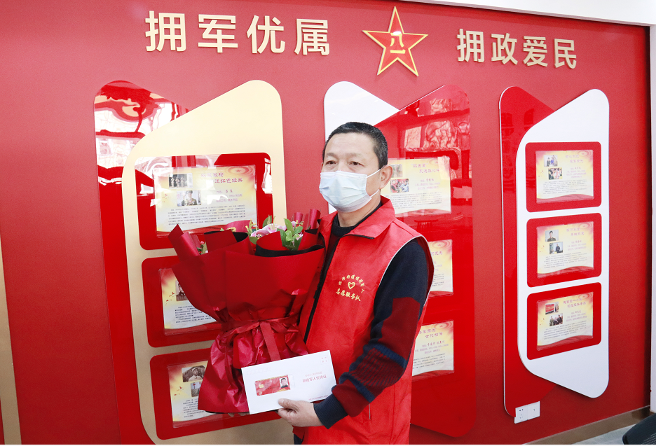曾參加對越防御作戰(zhàn)的曹繼紅1988年退役,2021年退休后,熱心公益的他在退役軍人服務站進行志愿服務,榮獲2021年度迎澤區(qū)“最美退役軍人”稱號。為了褒獎曹繼紅退役不褪色的精神,當日,工作人員將退役軍人優(yōu)待證送到曹繼紅的工作崗位,負責本批次制證的郵儲銀行工作人員現(xiàn)場為曹繼紅開卡。