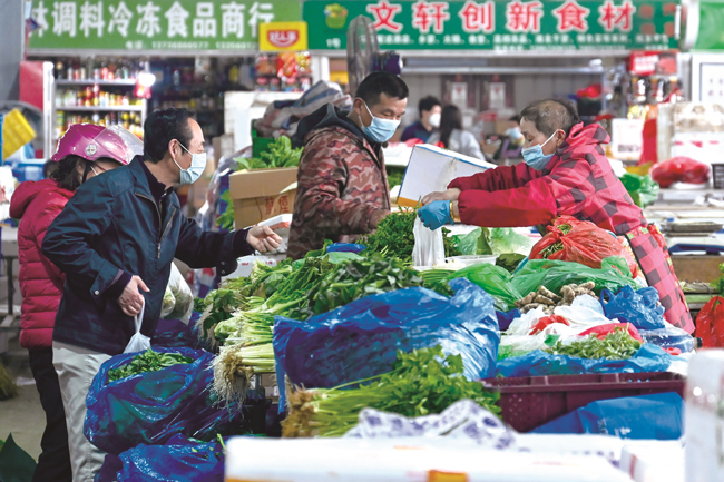 3月30日,在嘉興南湖區(qū)荷花堤臨時菜場,疫情防控人員嚴格落實防疫措施,凡是進入菜場必須規(guī)范戴好口罩,掃行程碼,出示行程卡,測量體溫。菜場內(nèi)各類攤位貨物充盈,價格平穩(wěn),讓老百姓的“菜籃子”又穩(wěn)又安全。(張啟帆)