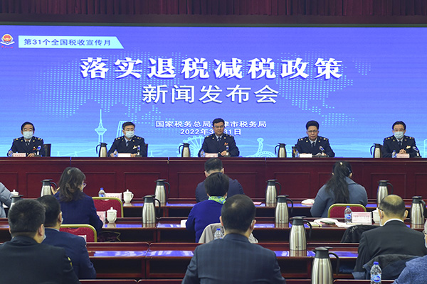 天津市稅務局黨委委員、副局長、市局退稅減稅辦主任付強通報了天津市稅務系統(tǒng)落實退稅減稅降費政策的總體部署,天津市稅務局黨委委員、總經(jīng)濟師、新聞發(fā)言人張連祥主持發(fā)布會,并就組織開展稅收宣傳月系列活動進行介紹,相關(guān)業(yè)務處室圍繞更好落實新的組合式稅費支持政策、提升稅費服務質(zhì)效作了具體說明。