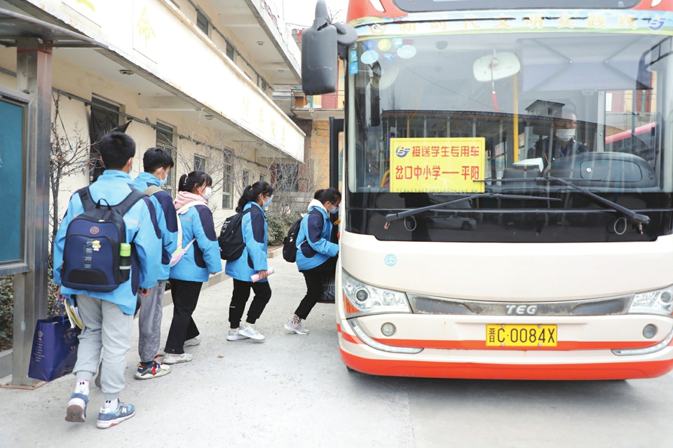 2013年,陽(yáng)泉市平定縣實(shí)行交通惠民“暖心工程”,開(kāi)通了免費(fèi)接送寄宿制學(xué)生專用車,每周五下午到校接送學(xué)生回家,周一早晨再接送他們安全返校。截至目前,平定公交公司共開(kāi)通接送寄宿生專線72條,投入運(yùn)營(yíng)車輛95臺(tái),覆蓋全縣10個(gè)鄉(xiāng)(鎮(zhèn))的202個(gè)村莊、31所學(xué)校、2600余名寄宿制學(xué)生。圖為近日,該縣岔口中學(xué)操場(chǎng)上,分散居住在十里八鄉(xiāng)的寄宿制學(xué)生正準(zhǔn)備乘車回家。(張春林?jǐn)z)