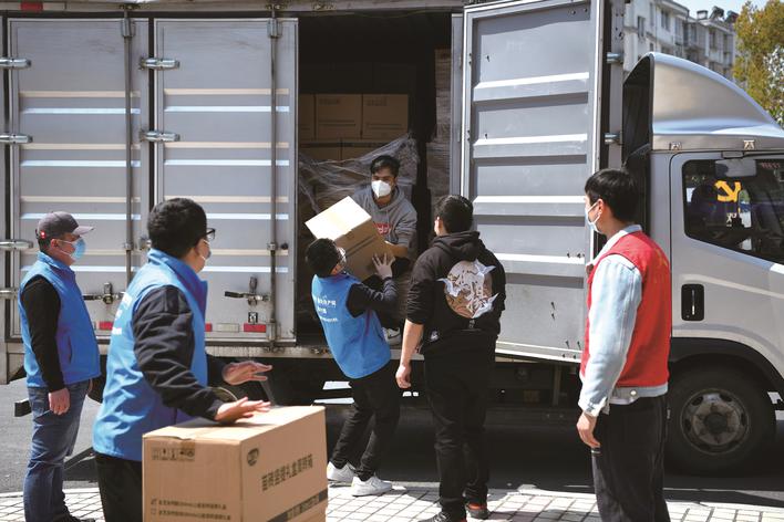 4月6日,在嘉興南湖區(qū)東柵街道雙溪社區(qū),愛心企業(yè)在嘉興團(tuán)市委的統(tǒng)籌下,將一批牛奶等愛心物資送到抗疫一線。當(dāng)天,該愛心企業(yè)將1200箱牛奶分別送至嘉興南湖區(qū)、秀洲區(qū)、經(jīng)開區(qū)、桐鄉(xiāng)市和海寧市的“疫”線志愿者手中,為他們送去溫暖。(王振宇)