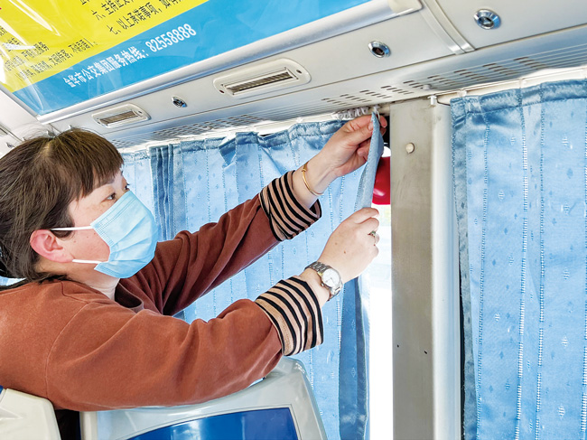 4月6日,金華市區(qū)523路公交車開始安裝遮陽簾。隨著天氣逐漸轉熱,金華金東所有公交車將陸續(xù)安裝上遮陽簾。車隊長周英飛說,安裝了遮陽簾,乘車舒適度會大為改善。(李建林)