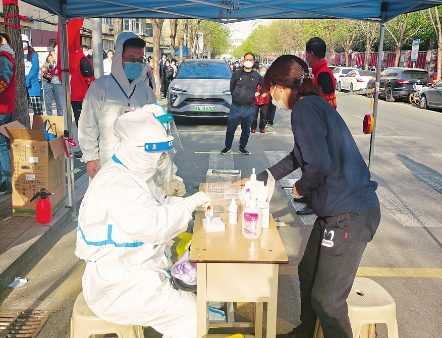 4月11日,省城迎澤區(qū)進(jìn)行居民核酸采樣。青年路小學(xué)教育集團(tuán)首批50名教師志愿者分別到迎澤區(qū)六個(gè)社區(qū)服務(wù)集合地點(diǎn)開展核酸檢測(cè)志愿服務(wù)。他們用行動(dòng)詮釋了在非常時(shí)期的使命與擔(dān)當(dāng)。(記者王瑞瑞攝)
