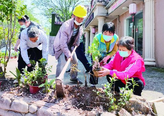 近日,金華市區(qū)城中街道楊思嶺社區(qū)企退人員、黨員志愿者開(kāi)展“愛(ài)心植樹(shù)、綠色環(huán)?!睂?shí)踐活動(dòng),在公共花壇泥土裸露的地方,補(bǔ)栽梔子花、風(fēng)尾花等花卉,美化社區(qū)環(huán)境。(時(shí)寬兵)
