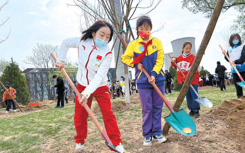 冬奧冠軍隋文靜與石景山的青少年一起參與植樹(shù)活動(dòng)。 本報(bào)記者 吳鏑攝