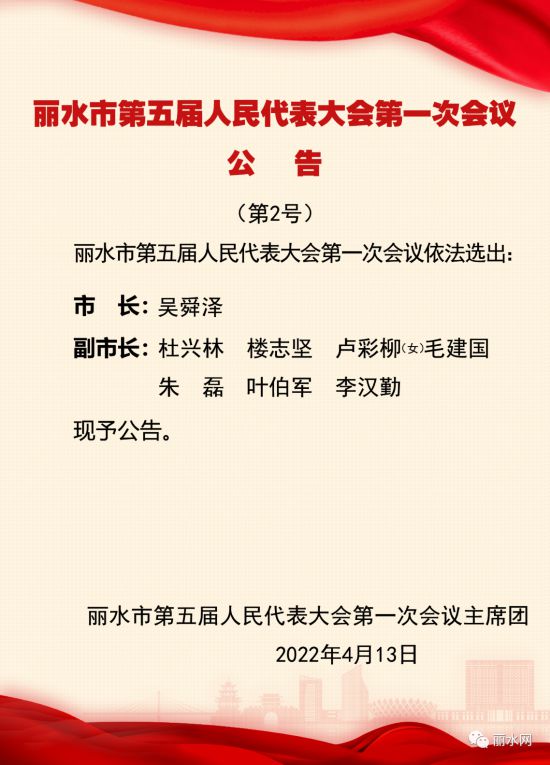 李鋒當(dāng)選為麗水市人大常委會(huì)主任 吳舜澤當(dāng)選為麗水市人民政府市長(zhǎng)