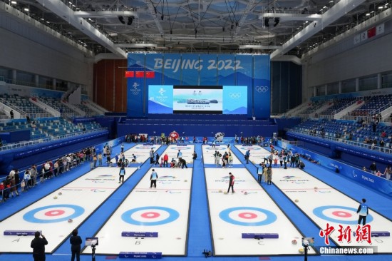 4月16日,北京,民眾在國家游泳中心體驗(yàn)冰壺運(yùn)動(dòng)。當(dāng)日,國家游泳中心重新面向公眾開放,并開啟冬奧文化大眾體驗(yàn)季,民眾可在冬奧會(huì)原有設(shè)施、燈光、大屏、景觀等環(huán)境下,感受冬奧和冰壺文化的氛圍。中新社記者 崔楠 攝
