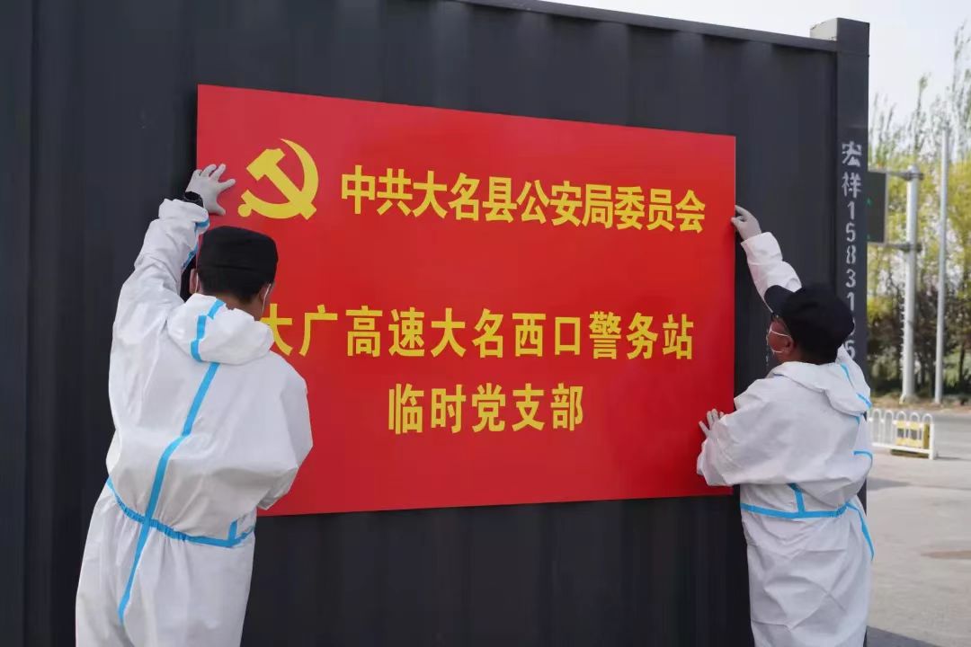 為加強(qiáng)疫情防控,大名公安充分發(fā)揮基層黨支部的戰(zhàn)斗堡壘作用和黨員干部先鋒模范作用,在一線設(shè)立臨時(shí)黨支部,做到關(guān)鍵時(shí)刻有組織在,關(guān)鍵崗位有黨員在?!芭R時(shí)黨支部的成立,既是廣大黨員沖鋒在前的‘催征鼓’,也是全體民警抗疫護(hù)民的‘作戰(zhàn)令’?!贝竺h公安局政委李軍輝說(shuō)。