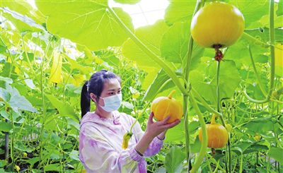 鄉(xiāng)村“采摘游”成為市民娛樂休閑的新選擇。日前,位于北辰區(qū)雙街鎮(zhèn)的農(nóng)業(yè)產(chǎn)業(yè)園果蔬采摘園中,金絲南瓜已進(jìn)入成熟期,吸引市民前來(lái)采摘。(記者 孫立偉 攝)