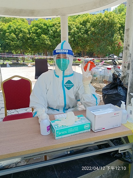 3月以來(lái),上海疫情防控形勢(shì)嚴(yán)峻。來(lái)自同濟(jì)大學(xué)附屬東方醫(yī)院的護(hù)士姜蕾蕾在完成科室內(nèi)本職工作外,還積極報(bào)名參與醫(yī)院組織的外出采核工作。從4月3日開始,她便駐扎在浦東陸家嘴街道,負(fù)責(zé)各社區(qū)的核酸大篩查與掃樓任務(wù)。已半個(gè)多月沒(méi)有回自己的浦東小家陪陪丈夫與孩子的她,更別提回老家江蘇探望家人朋友們了。