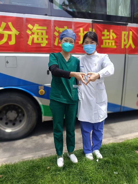 梁慧和姜蕾蕾一樣,在江蘇省鹽城市濱??h第一人民醫(yī)院腦外科任職護(hù)士。作為一名擁有8年黨齡的老黨員,在得知上海需要支援時(shí),她毫不猶豫地在單位報(bào)名加入了江蘇省援滬醫(yī)療隊(duì)鹽城濱海分隊(duì)。“我知道表妹已在一線日夜奮戰(zhàn)了一個(gè)多月了,這一次,我們姐妹倆也算是一起并肩作戰(zhàn)了”,梁慧笑著說(shuō)道。