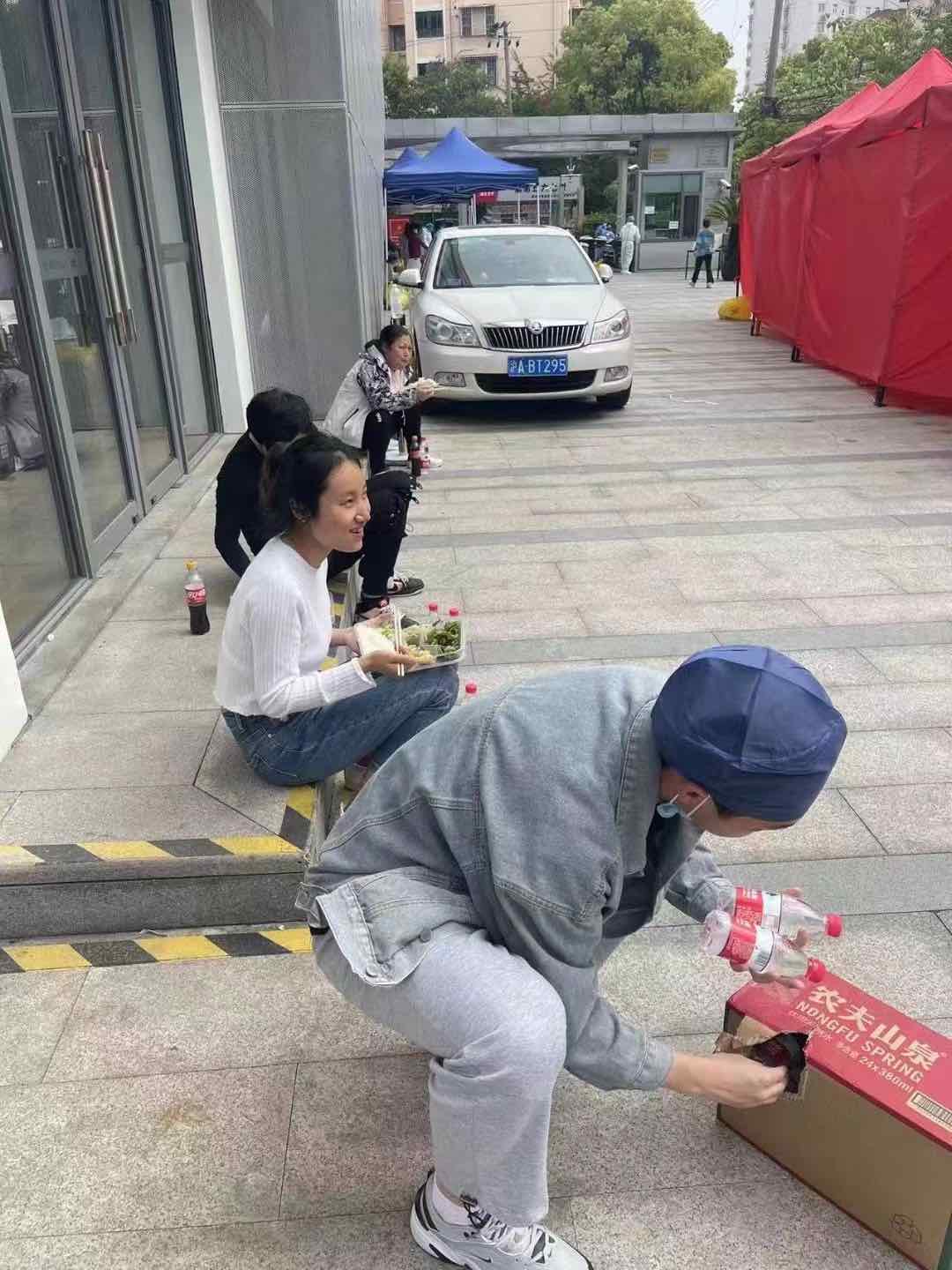 這批“新手”4月14日即參與到新區(qū)核酸采樣大篩,歸隊已是第二天凌晨。周瑩和后勤保障人員仍然在等著他們,準(zhǔn)備了夜宵和熱水。幾天相處,她說:“每天都是兩三點(diǎn)睡,6點(diǎn)多起,但是,我為他們自豪!他們給了我力量!”