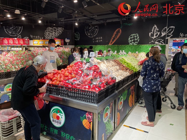 在物美超市雙井店,新鮮的蔬菜水果擺滿貨架。人民網(wǎng) 董兆瑞攝