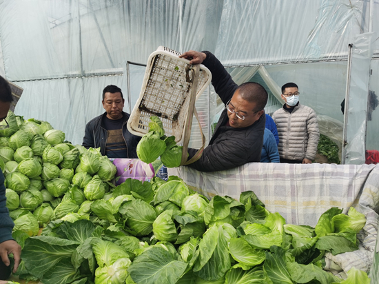 菜農(nóng)在采收大棚蔬菜。 劉柯旋攝