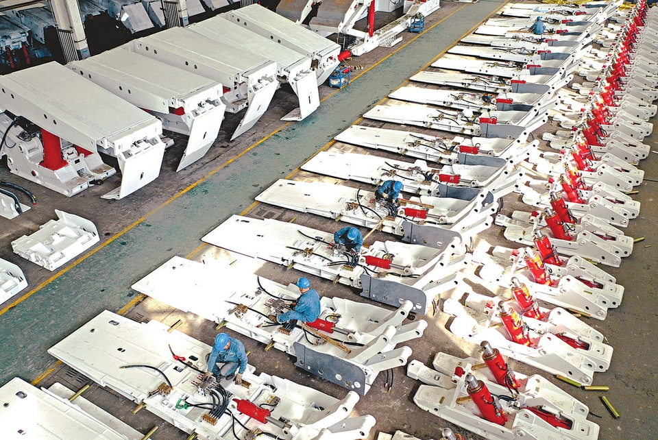 4月24日,在晉能控股裝備制造集團華越公司生產車間,該公司承接的四川樂山和邦集團的液壓支架產品正在緊張組裝。今年以來,該公司大力開拓省外市場、做優(yōu)做強,提升產品市場影響力,全方位推動企業(yè)高質量發(fā)展。(記者劉通攝)