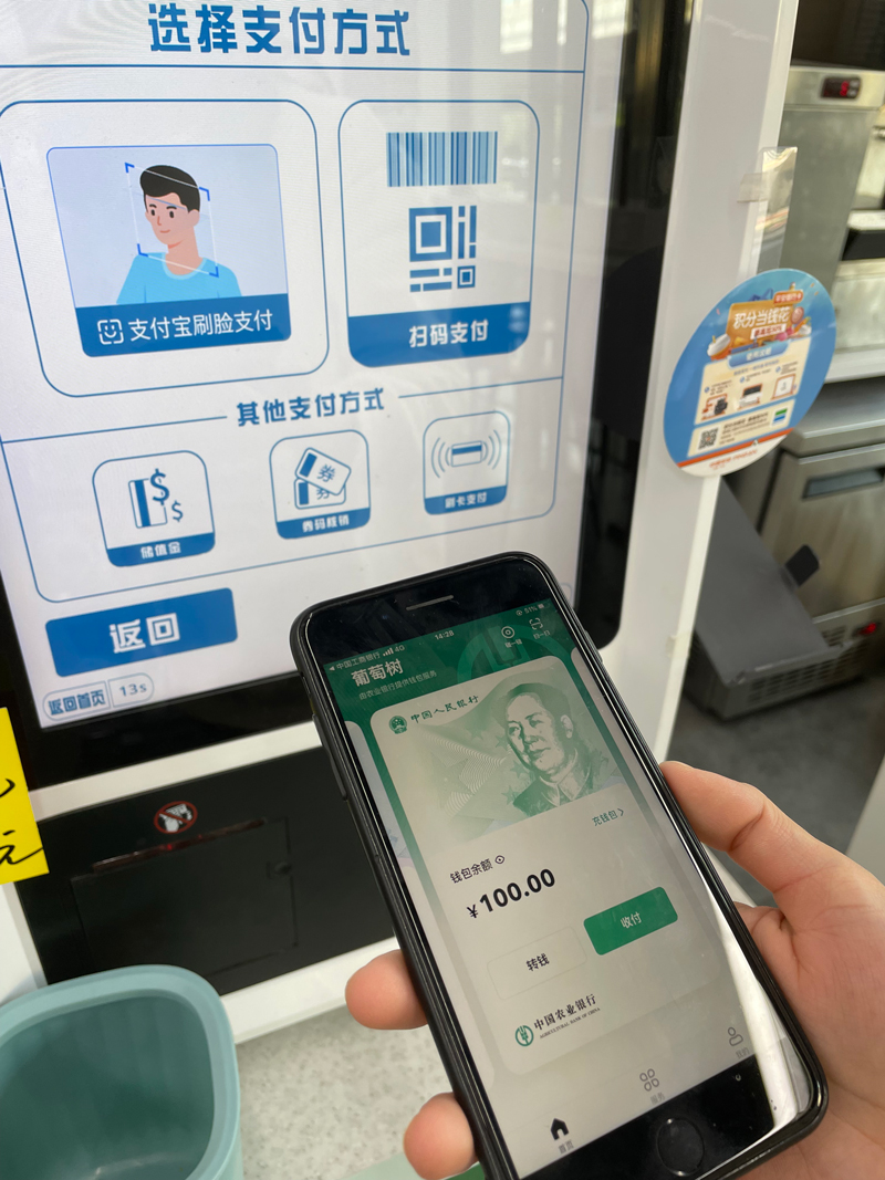 在杭州一家連鎖水果超市的收銀臺(tái),“歡迎使用數(shù)字人民幣”的標(biāo)簽醒目地貼在了柜面,該連鎖水果超市成為杭州較早開通數(shù)字人民幣支付功能的連鎖企業(yè)之一。同樣的情況也發(fā)生在另一家連鎖便利店,無論是在人工結(jié)算柜臺(tái)還是自助機(jī)具上,顧客都可以使用數(shù)字人民幣支付。