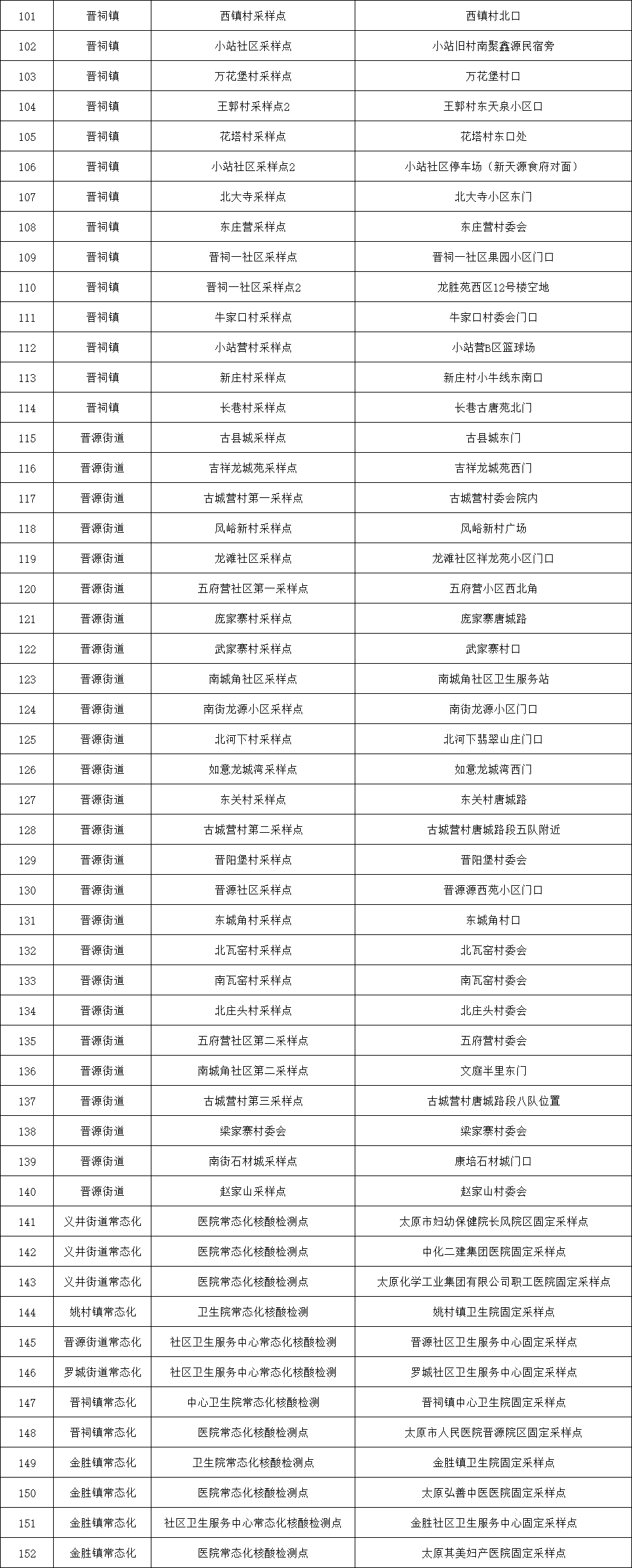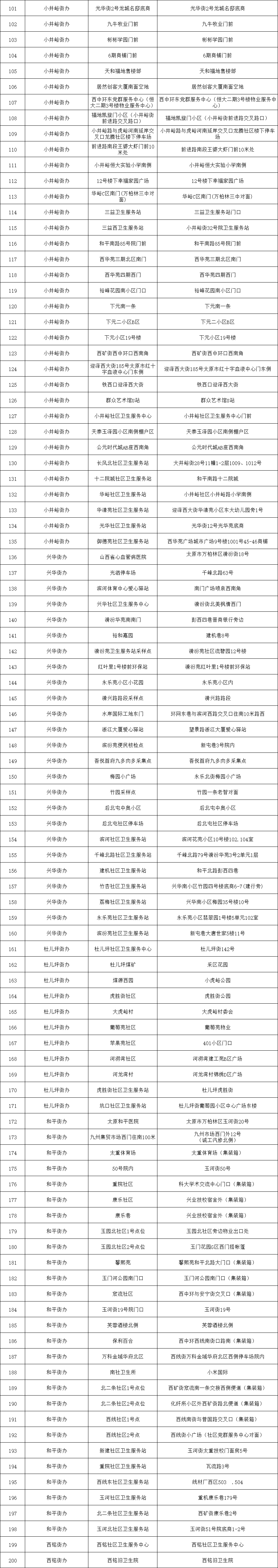 附:太原六城區(qū)便民核酸采樣點位