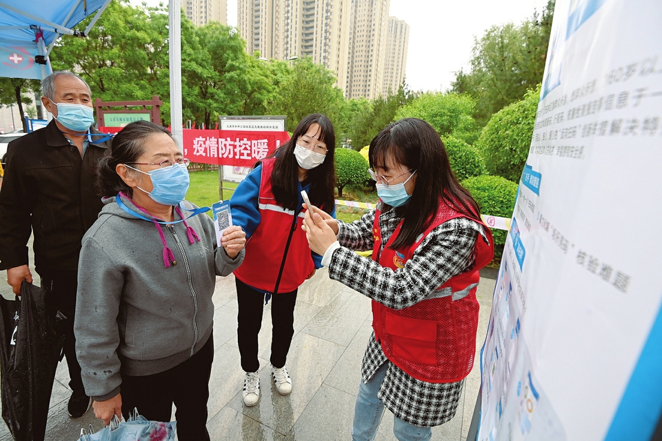5月12日,太原市和平公園核酸檢測(cè)點(diǎn),老年居民體驗(yàn)“反向掃碼”帶來的便捷。據(jù)了解,常態(tài)化疫情防控下,為保障老年人和未成年人便捷出入公共場(chǎng)所,萬柏林區(qū)為60歲以上老年人及未成年人免費(fèi)發(fā)放集健康碼、行程卡、核酸檢測(cè)報(bào)告等信息于一體的愛心碼出行卡,用“反向掃碼”新舉措解決特殊群體“亮碼”難題。(記者阮洋攝)