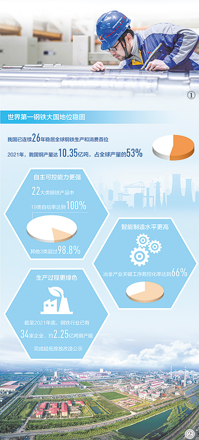 “目前,我國(guó)已經(jīng)建立起全球產(chǎn)業(yè)鏈最完備、規(guī)模最大的鋼鐵工業(yè)體系,配備了世界上最先進(jìn)的裝備、工藝和技術(shù),能提供最豐富齊全的鋼鐵產(chǎn)品?!敝袊?guó)鋼鐵工業(yè)協(xié)會(huì)黨委書記何文波說(shuō),黨的十八大以來(lái),鋼鐵業(yè)現(xiàn)代化水平不斷提升。