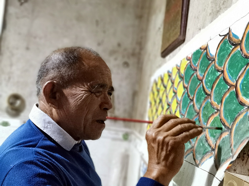 上完課,跟隨羅德書來到他的家里。只見畫好龍麒麟的油紙被當成裝飾品掛在墻上,雨壇彩龍的半成品隨處可見。