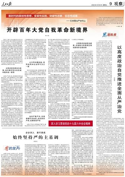 全面從嚴(yán)治黨是黨永葆生機(jī)活力、走好新的趕考之路的必由之路。黨的十九屆六中全會(huì)通過的《中共中央關(guān)于黨的百年奮斗重大成就和歷史經(jīng)驗(yàn)的決議》,深刻總結(jié)了新時(shí)代在全面從嚴(yán)治黨上取得的原創(chuàng)性思想、變革性實(shí)踐、突破性進(jìn)展、標(biāo)志性成果。今天刊發(fā)的3篇文章,圍繞這一主題進(jìn)行闡述。