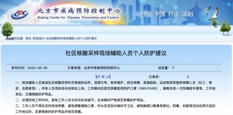 北京:社區(qū)核酸采樣輔助人員未穿二級防護不得入采樣區(qū)