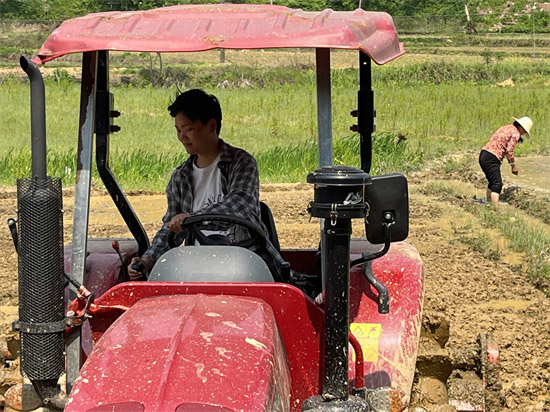 駕駛農(nóng)機(jī)為村民耕田的曾曉瑤。受訪者供圖