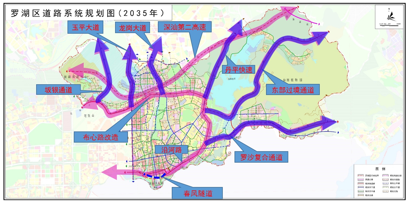 其中,“一環(huán)六射”備受關(guān)注?!耙画h(huán)”由濱海大道(春風(fēng)路隧道)、沿河路、愛國(guó)路高架、布心路(布心路下沉)、深汕第二高速構(gòu)成;“六射”包括羅沙路(復(fù)合通道)、東部過境通道、玉平大道、龍崗大道、丹平快速、坂銀通道。