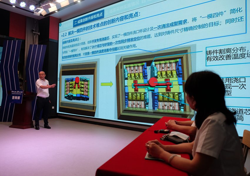 綠色生態(tài)座艙開發(fā)研究技術(shù)成果、變壓器套管換油裝置、高效率的一模四件發(fā)動機(jī)缸體毛坯關(guān)鍵技術(shù)研究及成果轉(zhuǎn)化應(yīng)用、新能源退役動力電池在SGMW制造系統(tǒng)梯次利用項(xiàng)目、重卷機(jī)組關(guān)鍵設(shè)備減時操作法……參加決賽的項(xiàng)目成果完成人采用PPT講解和現(xiàn)場答辯相結(jié)合的形式進(jìn)行對決。項(xiàng)目答辯人就項(xiàng)目立項(xiàng)背景、成果創(chuàng)新內(nèi)容和亮點(diǎn)、成果采納實(shí)施情況、經(jīng)濟(jì)效益、社會效益、獲獎情況等進(jìn)行了介紹,并圍繞創(chuàng)新成果的創(chuàng)新性、原創(chuàng)性、成果應(yīng)用成熟性、質(zhì)量可靠性、成果的先進(jìn)程度、成果技術(shù)水平和難易程度、成果提高勞動生產(chǎn)效率作用、經(jīng)濟(jì)效益、社會效益、成果的適用范圍和推廣前景等方面回答評委的提問。