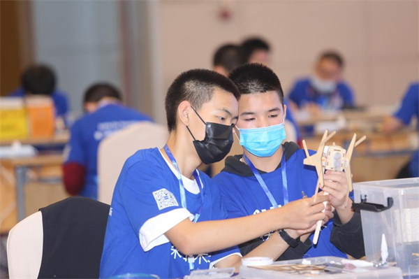 未來太空車復賽由現(xiàn)場制作和障礙物攀爬兩部分組成,參賽隊伍需在規(guī)定時間內完成太空車制作并通過尺寸核驗,最后通過三輪障礙物攀爬比賽決出勝負。比賽中,參賽隊伍以問題為導向,在充分考慮“太空車”爬行動力支撐、速度、阻力、摩擦力等制約因素下,進行裝置的拼裝及改裝,隨著“太空車”一個接一個地翻越過障礙物,現(xiàn)場同學們紛紛送上喝彩。