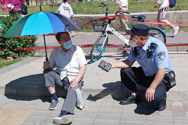西三旗派出所社區(qū)民警周慶為居民服務。海淀公安分局供圖