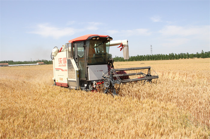 在種糧大戶呂振柏的800畝麥田里,大型收割機(jī)往來(lái)作業(yè),看見(jiàn)農(nóng)行工作人員的到來(lái),老呂興奮地說(shuō)起了今年小麥的產(chǎn)量收成:“今年麥子很好啊,雖然雨水有點(diǎn)少,但是有了貸款支持,澆水、施肥、打藥等管理都沒(méi)耽誤過(guò),預(yù)計(jì)畝產(chǎn)能達(dá)到1200斤,而且價(jià)格比去年也高了,能賣(mài)個(gè)好價(jià)錢(qián)”。