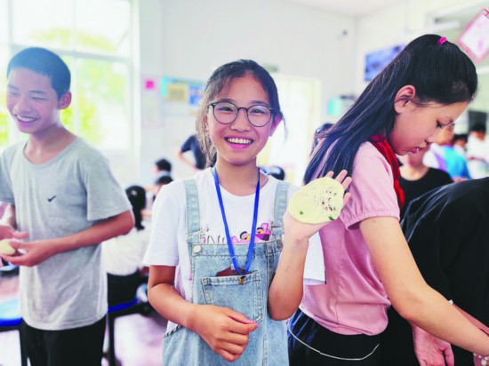 為什么會讓學(xué)生學(xué)做燒餅?zāi)??校長王國寶這樣解釋:“縉云燒餅的制作技藝是國家級非物質(zhì)文化遺產(chǎn),讓學(xué)生傳承這項技藝,也能讓他們感受縉云人記憶深處的味道。六年級的同學(xué)即將畢業(yè),以后他們會離開縉云展翅高飛,真心希望他們能記住縉云燒餅這個回家的路標?!?/p>